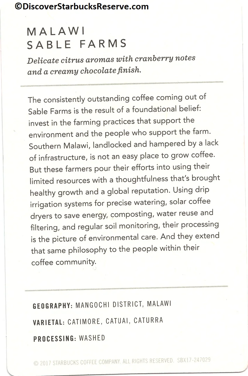 Malawi Sable Farms is back! This appeared at the Roastery on March 19, 207. It actually appeared right before closing, at about 10:30 PM, as I happened to be standing there as a partner put Flavorlock bags of it out on the shelf.